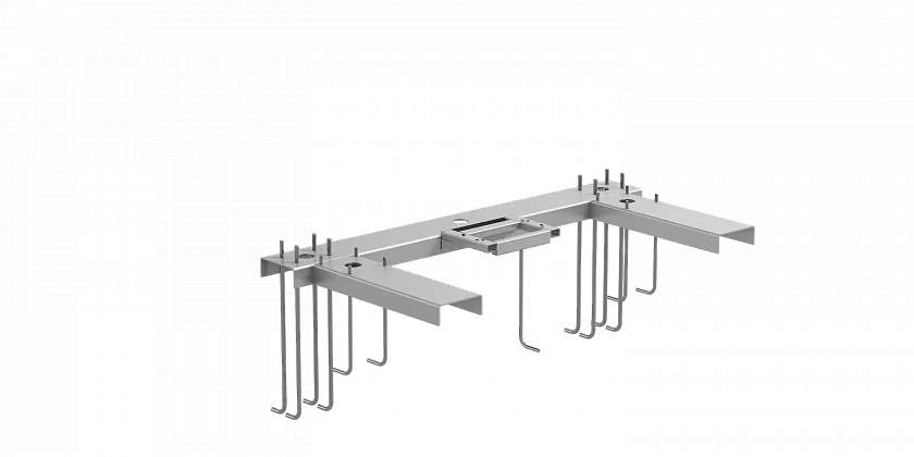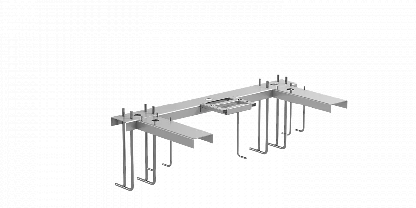 Опорная рама FLGU.400.0823 предназначена для установки ворот, которые изготовлены из профилей толщиной 96 мм (со столбами или кронштейнами поддерживающими). Расстояние между каретками: I=1200 мм.