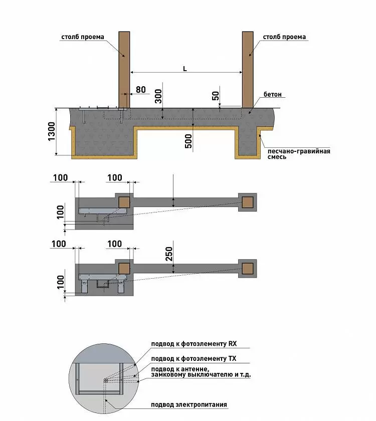 Схема фундамента для откатных ворот