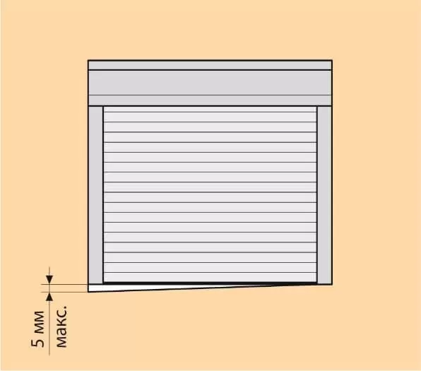 Если при закрытии роллеты концевой профиль будет опираться на элементы проема (пол, подоконник, отлив), отклонение их от горизонтали не должно превышать 5 мм.