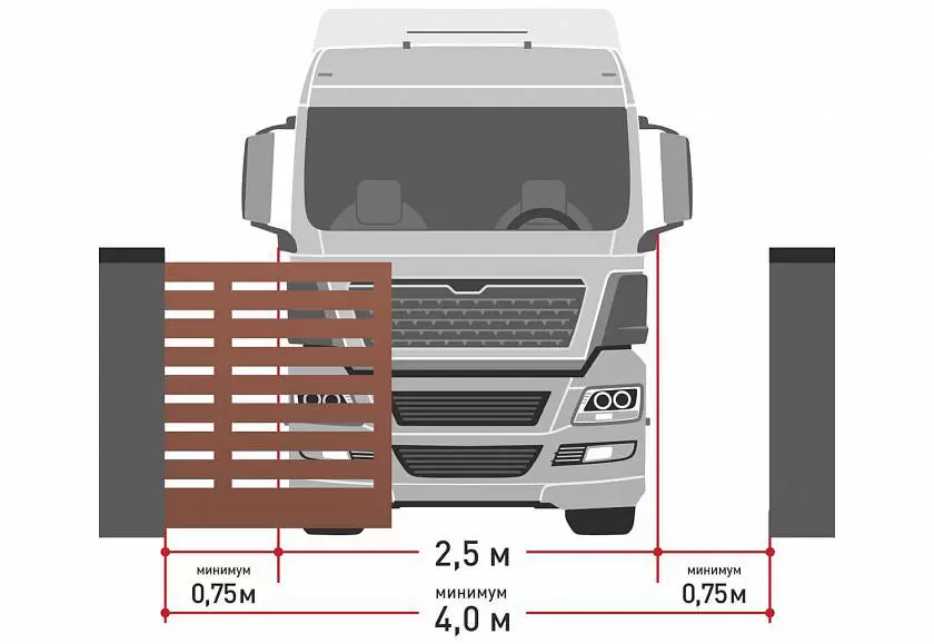 Из-за недостаточной ширины проема можно поцарапать автомобиль при въезде на участок или выезде с него. Поэтому для максимальной безопасности и комфорта необходимо вычислить подходящую ширину проема. Она зависит от габаритов машины. Например, для удобного въезда легкового автомобиля ширина проема должна составлять не менее 3,5 м, для удобного въезда грузовика — более 4 м.