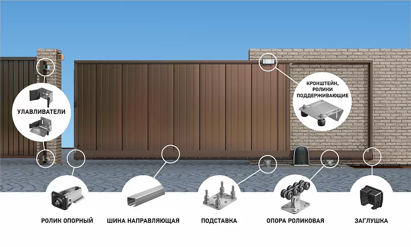 Подбирать все перечисленное можно по отдельности. Но в данном случае повышается риск приобрести некачественные или несовместимые между собой детали. Поэтому производители предлагают готовые комплекты для сборки и установки откатных ворот.