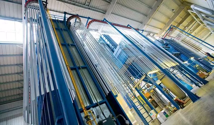 Применяемое на заводах ГК «АЛЮТЕХ» современное оборудование — цех анодирования, автоматические линии порошковой окраски экструдированных профилей, комплекс по жидкостной покраске алюминиевой и стальной ленты, — позволяет наносить на изделия высококачественное покрытие, устойчивое к механическому и тепловому воздействию, ультрафиолетовому излучению, коррозии и другим негативным факторам.