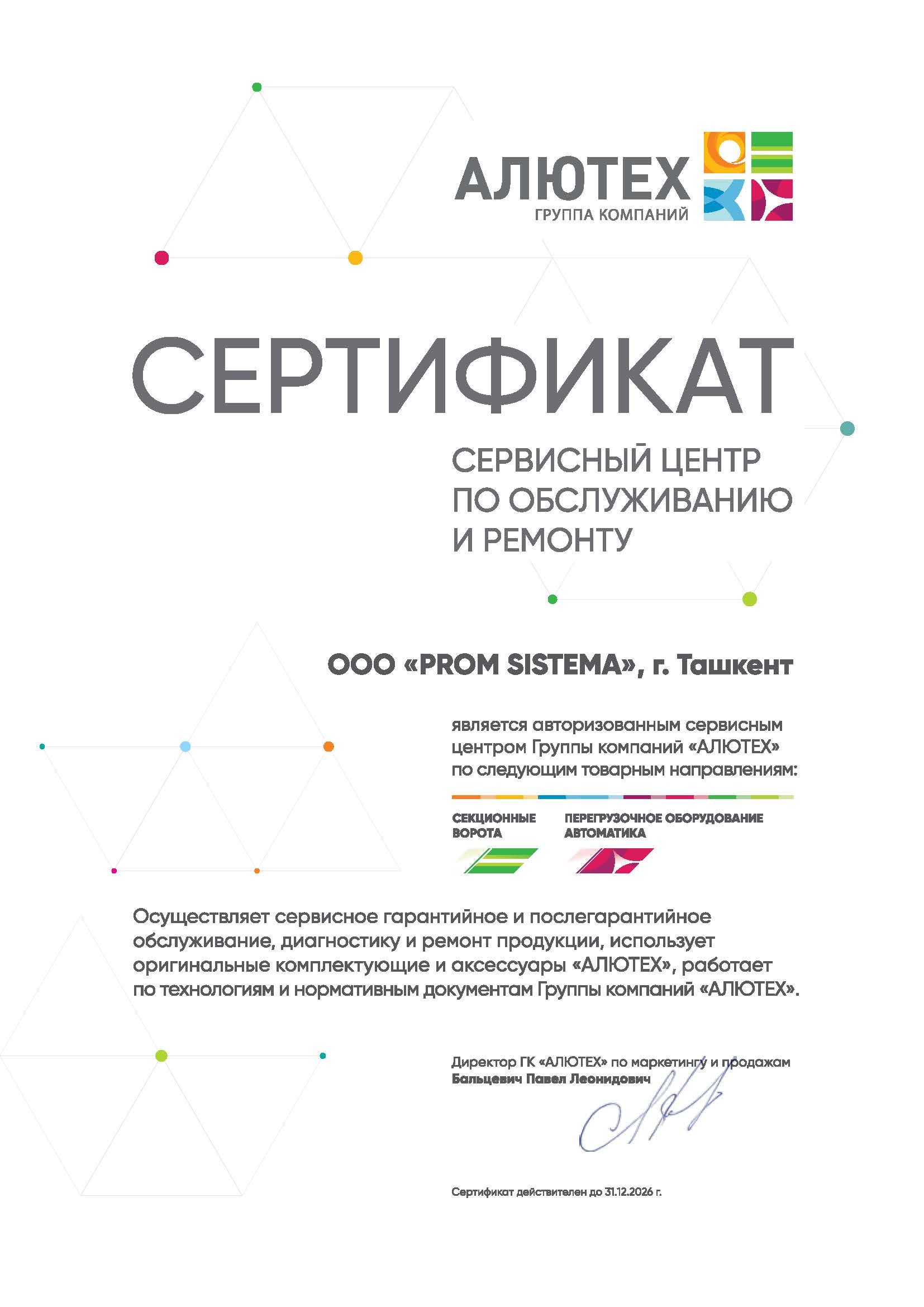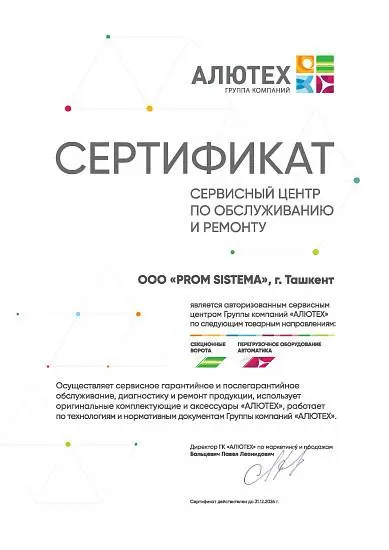 ООО «Prom Sistema» — официальный партнёр ГК «Алютех» в Узбекистане. Мы работаем по всей стране и предлагаем полный ассортимент: роллеты, ворота, автоматику и комплектующие. Наша команда — интернациональная. Общаемся с клиентами на узбекском, русском, белорусском, английском, таджикском, немного на турецком.