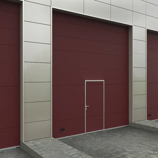 для отдельного входа-выхода. Гармонично сочетается с воротами, придавая фасаду помещения завершенный вид