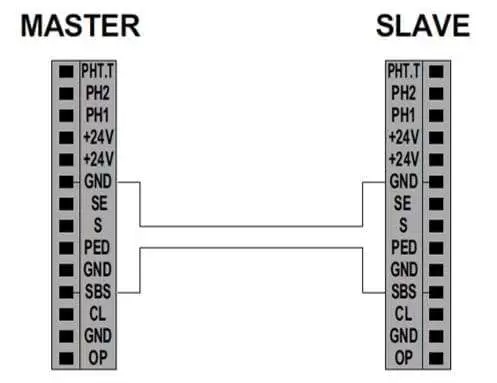 Да. В данном случае подключить комплект автоматики для откатных ворот (состоящий из 2 электроприводов Roteo) необходимо по схеме: