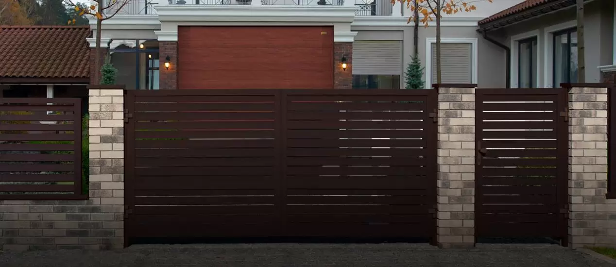 Распашные ворота и калитки серии Prestige могут открываться в двух направлениях: внутрь (встроенный и накладной монтаж) и наружу (встроенный монтаж).
