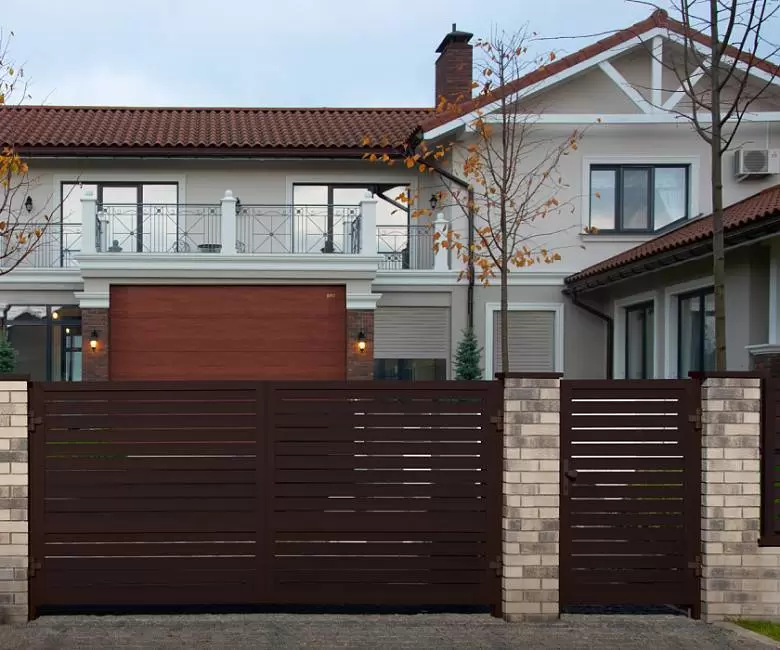 Широкая цветовая гамма профилей роликовой прокатки обеспечивает разнообразные варианты сочетания ворот с фасадом здания. В зависимости от цвета въездные ворота могут сливаться с фасадом или служить ярким элементом, подчеркивающим индивидуальный стиль дома.